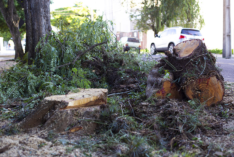 Sexta-feira, na Gaspar Silveira Martins, outra árvore foi suprimida. Segundo a RGE, são plantadas três para cada uma que é cortada