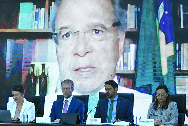 De acordo com Guedes, essa “relocalização industrial” e a reconfiguração das cadeias produtivas serão “baseadas em confiabilidade e em segurança institucional”. “É basicamente em cima da confiança. Querem alguém que siga as regras do jogo, que não mude regras e não tome medidas unilaterais agressivas e geopoliticamente instáveis. Querem que sejam previsíveis. O Brasil está perto e é confiável”, disse, reiterando a defesa que sempre faz da simplificação de impostos e do sistema tributário.