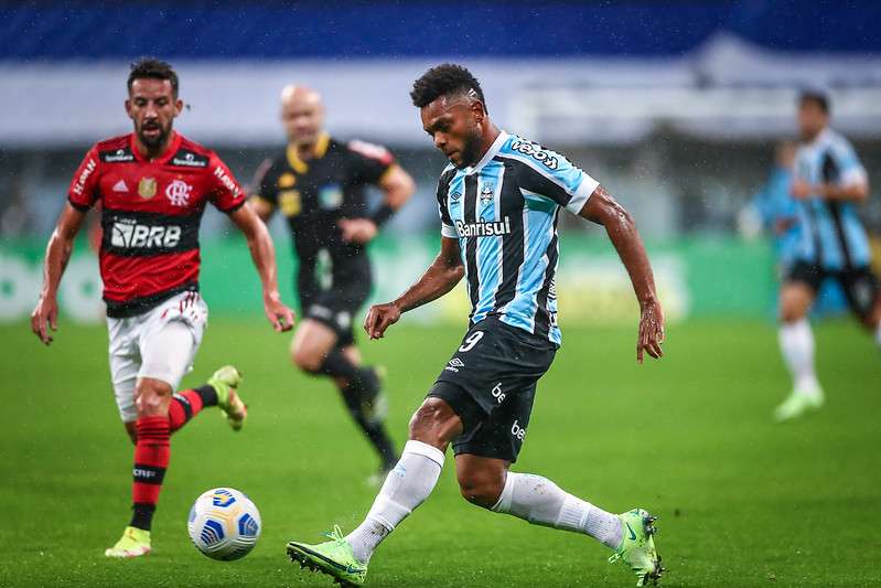O Grêmio apresentou um bom futebol na primeira etapa, e teve chances de sair na frente na Arena. Ainda antes do primeiro minuto, o atacante Borja finalizou pela primeira vez para o tricolor, pegando o rebote de um chute de Villasanti na entrada da área e chutando perto da trave esquerda do goleiro Diego Alves, do Flamengo.