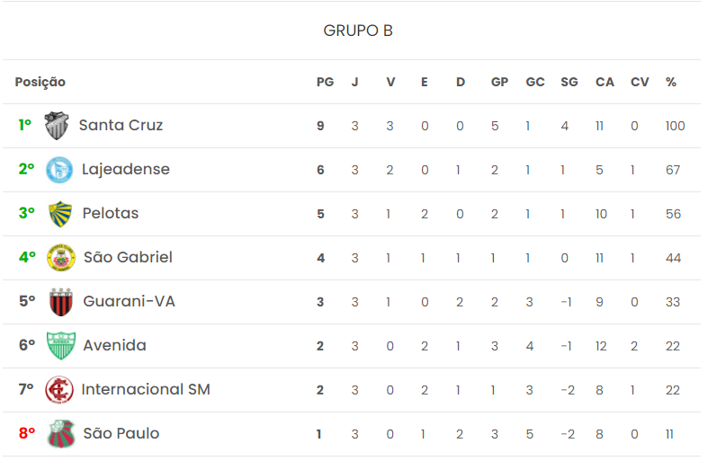 Classificação do Brupo B (Fonte: Reprodução/www.fgf.com.br)