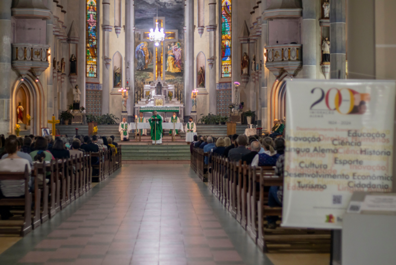 A missa das 17 horas do último sábado, 31, na Catedral São João Batista teve um diferencial. Ela foi toda celebrada no idioma alemão, atendendo ao pedido da comissão das comemorações dos 200 anos de imigração germânica no Brasil e 175 anos em Santa Cruz do Sul.