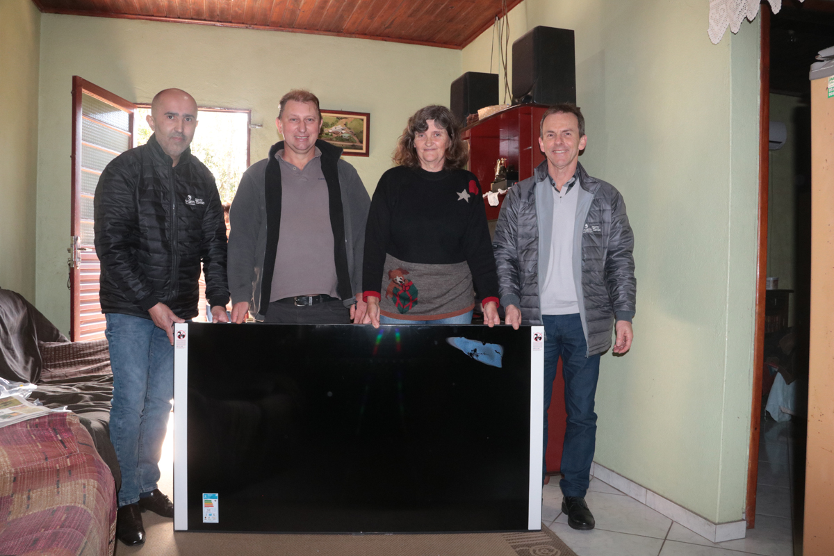 O Gestor Administrativo Financeiro da Gazeta Grupo de Comunicações, Sydney de Oliveira, esteve em Linha Andrade Neves para realizar a entrega da TV e do kit com camisetas e baldes de pipoca, e aproveitou para saudar a família Müller pela confiança. “Primeiramente, fica o nosso agradecimento especial ao seu Ivanir e à sua família, pela sua parceria de 18 anos com a Gazeta. Está no DNA da Gazeta, além da informação de primeira qualidade em todas as plataformas, ela também faz, anualmente, a distribuição de prêmios. Este ano estamos com a promoção especial Seleção, Conta Comigo, que terá três sorteios, com excelentes prêmios.”