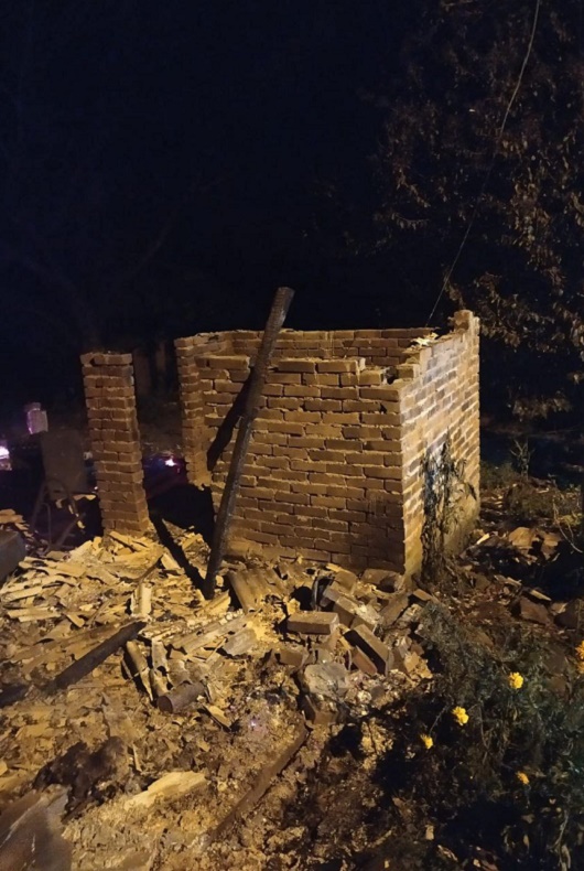No local, os profissionais encontraram a casa já consumida pelas chamas. De acordo com os bombeiros, foram utilizados 4 mil litro de água para combater o incêndio, que destruiu a estrutura de madeira de aproximadamente 120 metros quadrados.