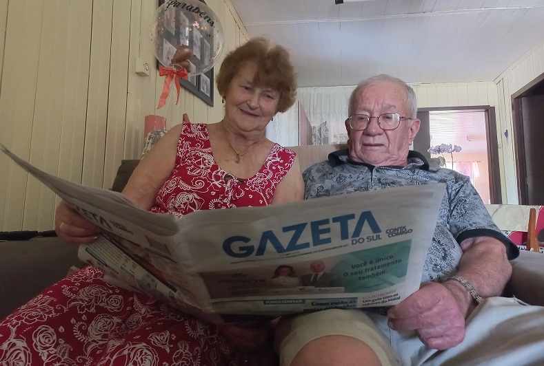 Nelly diz que ler o jornal faz parte da rotina dela e do marido Ottmar Schwengberg. “Eu pego de manhã. Sempre levanto antes dele, aí já pego a Gazeta e leio. Se eu não faço logo de manhã, faço mais perto do meio-dia, mas não fico sem.”