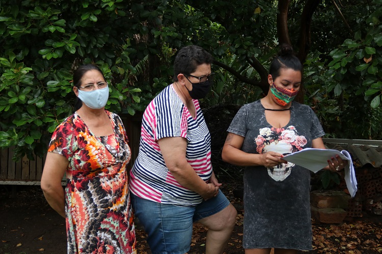 Olinda, Rejane e Marieli evitam circular pelo quintal de suas casas, por medo dos buracos