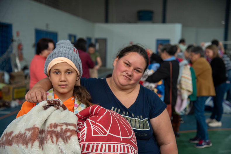 A estudante Amanda Vetorazzi, de 10 anos, ficou sabendo sobre a ação na Escola Estadual Affonso Rabuske, onde estuda, e foi auxiliar a mãe, a dona de casa Graziela, a carregar mantas e cobertores. Já no distrito de Boa Vista, a moradora de Linha Nova, Regina Bender, foi até a Escola Guilherme Simonis para escolher roupas quentinhas para a filha Raiane, de apenas 8 meses.
