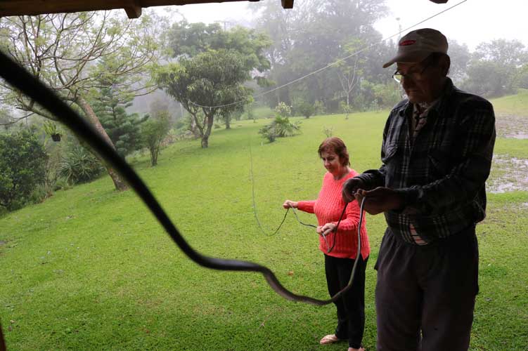 A exemplo do casal Müller, Fabiano Cesar Stuelp, de 28 anos, também precisou puxar a energia de uma vizinha através de um rabicho para manter o freezer ligado. No fim da tarde de segunda-feira, ele e o pai carnearam uma vaca e um porco na propriedade, também em Alto Boa Vista. Na manhã do dia seguinte, entretanto, quando estavam cortando a carne para guardá-la no freezer, a luz se foi. “Ficamos atordoados com os quilos de carne que poderiam estragar. Felizmente conseguimos puxar a energia da vizinha para não perdermos o abate”, disse Fabiano.