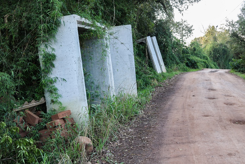 Em fevereiro deste ano, a Prefeitura fez a manutenção da ponte de madeira, trocando tábuas que estavam danificadas. Na época, a recomendação era de que apenas veículos leves deveriam passar pelo trecho, enquanto a nova estrutura de concreto não estivesse finalizada. No entanto, a insatisfação dos usuários é com o atraso nas obras. Segundo Mara Müller, que mora nas proximidades, a Prefeitura descarregou no local parte do material, mas o tempo passou e as galerias de concreto que serviriam de base da ponte já estão sendo tomadas pelo mato.