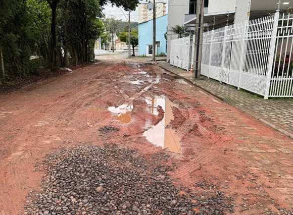 Moradores da Rua Deputado Germano Hasslocher, no Bairro Santo Inácio, em Santa Cruz do Sul encaminharam reclamação sobre a situação em que a via ficou após a Prefeitura ter realizado obra de canalização de esgoto há cerca de um mês. Relatam que o lugar foi mexido e coberto com terra, sem que a pavimentação fosse refeita.
