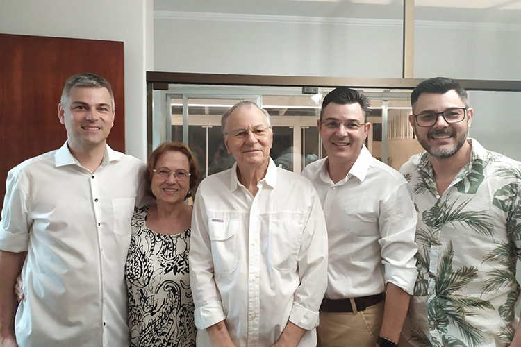 Niro (ao centro), no reveillón de 2021, acompanhado dos filhos Robert, Henry e Nelson e da esposa Selma