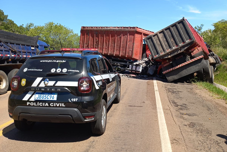 A Polícia Civil e o Instituto-Geral de Perícias também trabalham no local. Segundo informações repassadas à reportagem, os dois homens mortos no acidente já foram identificados. O motorista do caminhão de Sobradinho, morto no local, foi identificado como Glover Antônio Rosa. Ele tinha 27 anos. Já o motorista do caminhão de Osório, de 39 anos, foi identificado como Renato Manara.