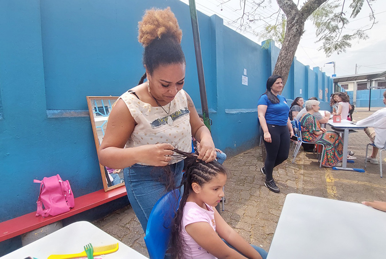 Já a garotinha Emanuele Soares, de apenas 5 anos, pediu para fazer tranças no cabelo. “Ela gosta de trancinhas, ela se sente bonita. Eu faço nela em casa mas nem sempre fica como eu quero “, brincou a mãe, Cristiane.