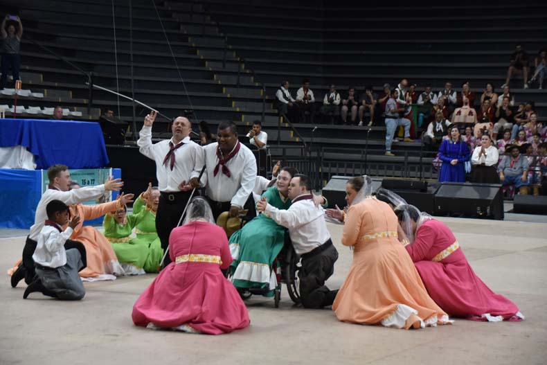 Segundo a presidente da Apae, Maribel Dockhorn, trata-se de um momento único e muito aguardado pelos integrantes do Grupo Gauchesco Apaixone-se. Ela parabenizou a organização do evento pela oportunidade e também por estar atenta à inclusão. Os 16 participantes que subiram no tablado se prepararam ao longo dos últimos meses sob a orientação da professora Viviane Lopes. Eles fizeram uma coreografia baseada em releitura da música Aleluia.