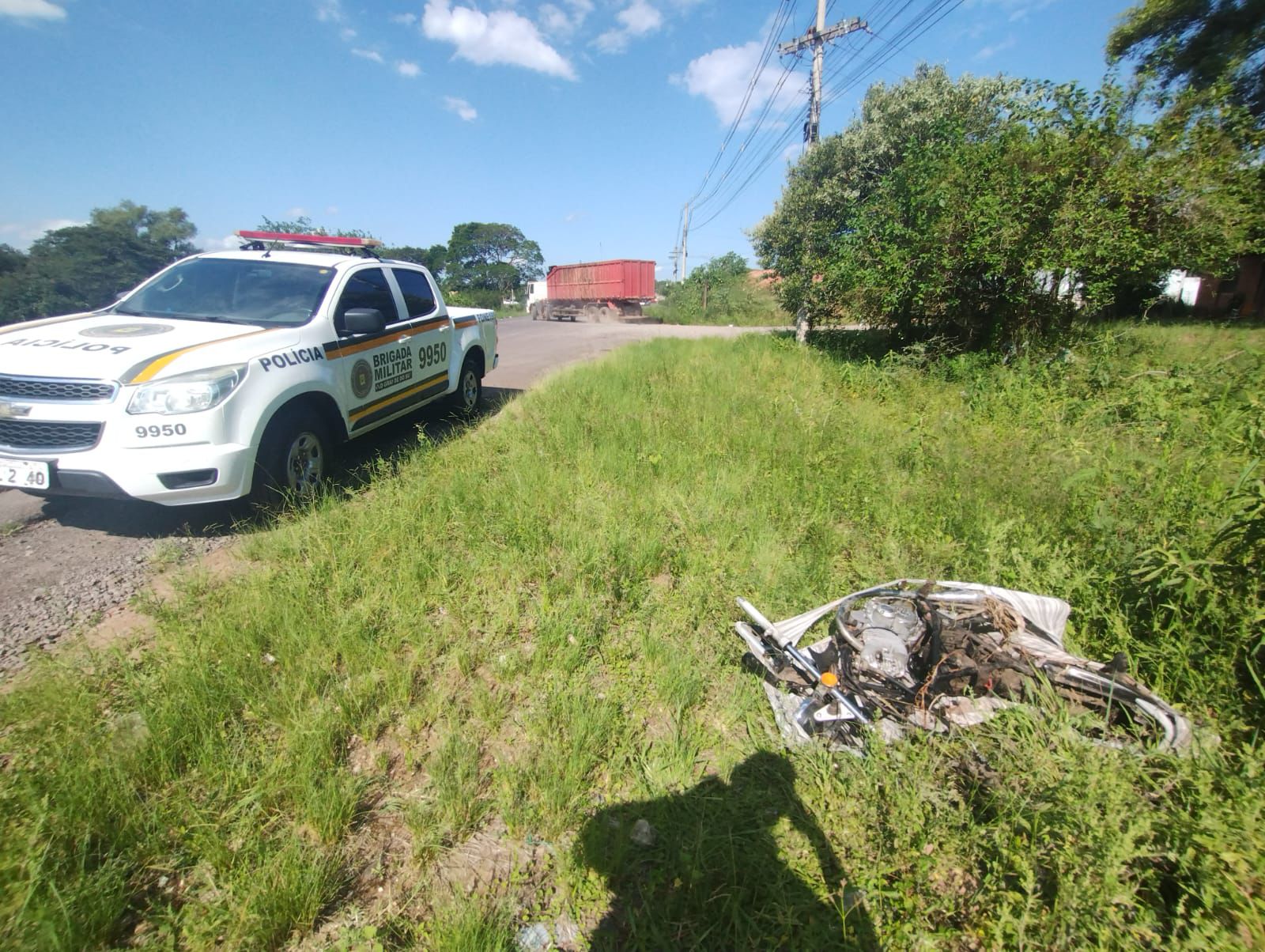 Uma motocicleta em situação de furto foi encontrada na Rua Curupaiti, nas proximidades da ERS-409, em Santa Cruz do Sul, na tarde desta quarta-feira, 18. O veículo estava depenado e sem placa de identificação. Em consulta se confirmou que se tratava da motocicleta em situação de furto. A moto foi apresentada na Delegacia de Polícia de Pronto Atendimento (DPPA) para o registro de ocorrência.