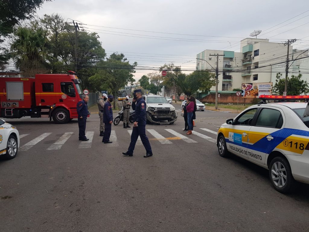 Um acidente na manhã desta terça-feira, 13, deixou uma motociclista ferida. A colisão ocorreu na esquina das ruas Galvão Costa e Tenente Coronel Brito, em Santa Cruz do Sul, por volta das 8h30.
