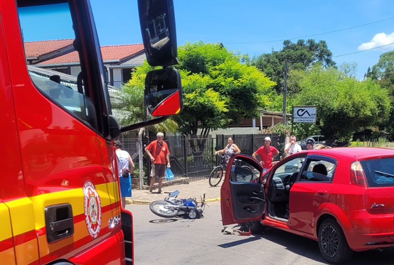 Uma colisão entre um carro e uma motocicleta deixou um homem ferido no início da tarde deste sábado, 24, no cruzamento das ruas Fernando Manoel Schwingel e Guido Paulo Schimidt, no bairro Santa Tecla em Venâncio Aires.