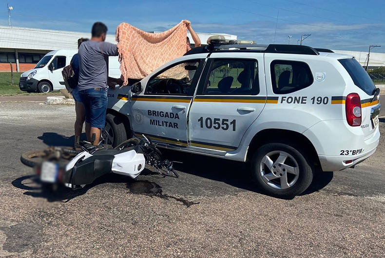 Segundo informações da Brigada Militar, a guarnição se deslocava ao Parque de Eventos para atender uma ocorrência e o motociclista seguia pela rodovia no sentido Distrito Industrial / Centro. Os policiais, que iriam cruzar a BR-471, relataram não terem visto a moto. Com o impacto, o motociclista ficou ferido. Ele foi socorrido por uma ambulância do Serviço de Atendimento Móvel de Urgência (Samu) e encaminhado consciente para atendimento médico. O trânsito no local exige atenção.