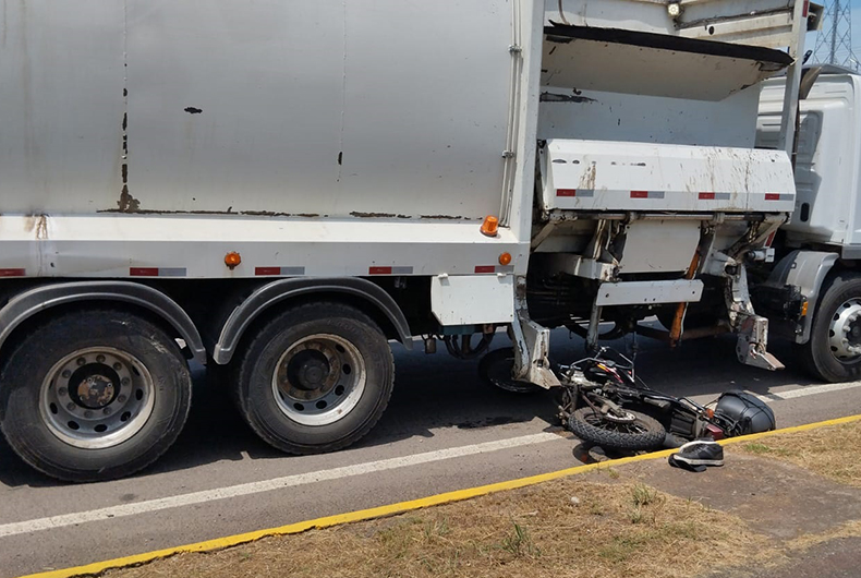 Um motociclista de uma empresa de segurança ficou ferido em um acidente na tarde desta segunda-feira, 12, na BR-471 em Santa Cruz do Sul. A colisão com um caminhão de uma empresa de recolhimento de lixo aconteceu por volta das 13h15, no Distrito Industrial.