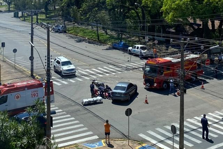 Um motociclista ficou ferido após um acidente de trânsito na tarde desta segunda-feira, no Centro de Santa Cruz do Sul. Ele se envolveu em uma colisão com um carro, pouco depois das 14 horas, no cruzamento das ruas Tenente Coronel Brito e Galvão Costa.