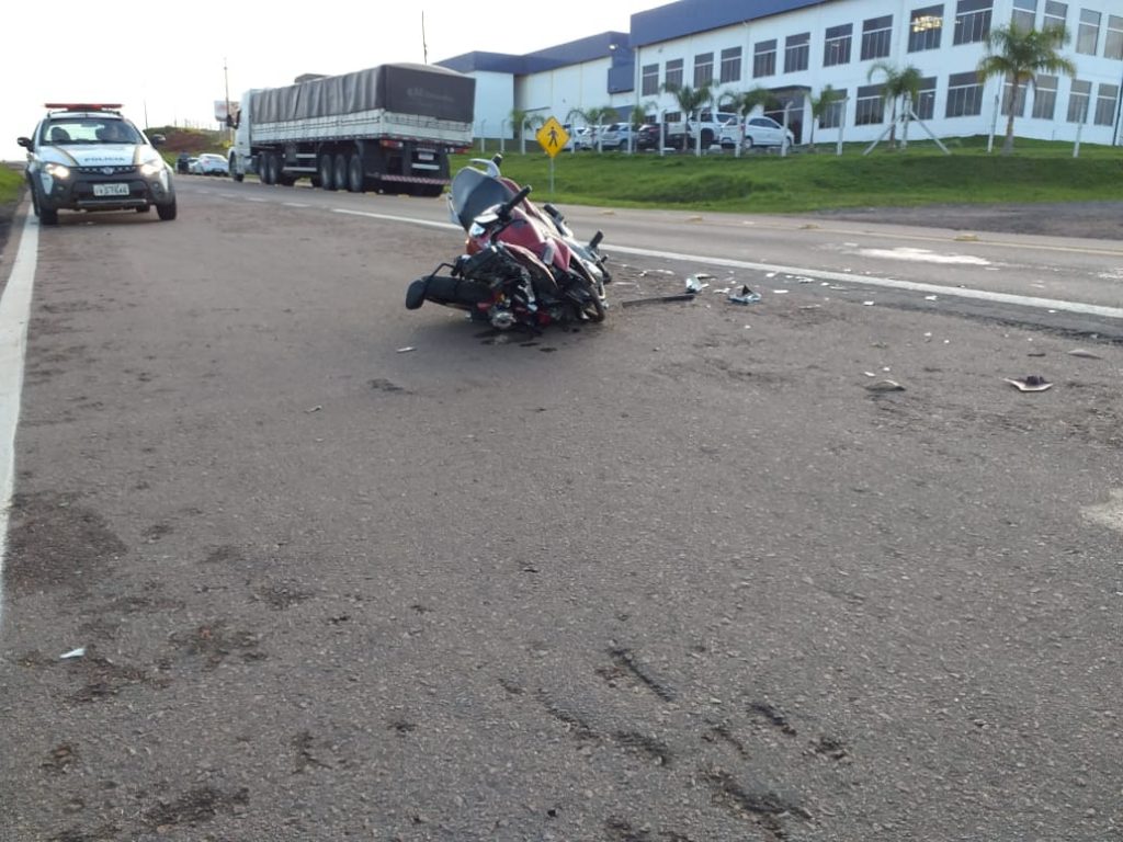 Na manhã desta quinta-feira, 2, um motociclista ficou ferido após um acidente no trevo da Avenida Perimetral com a BR-471, em Rio Pardo. A colisão ocorreu com um veículo Astra.