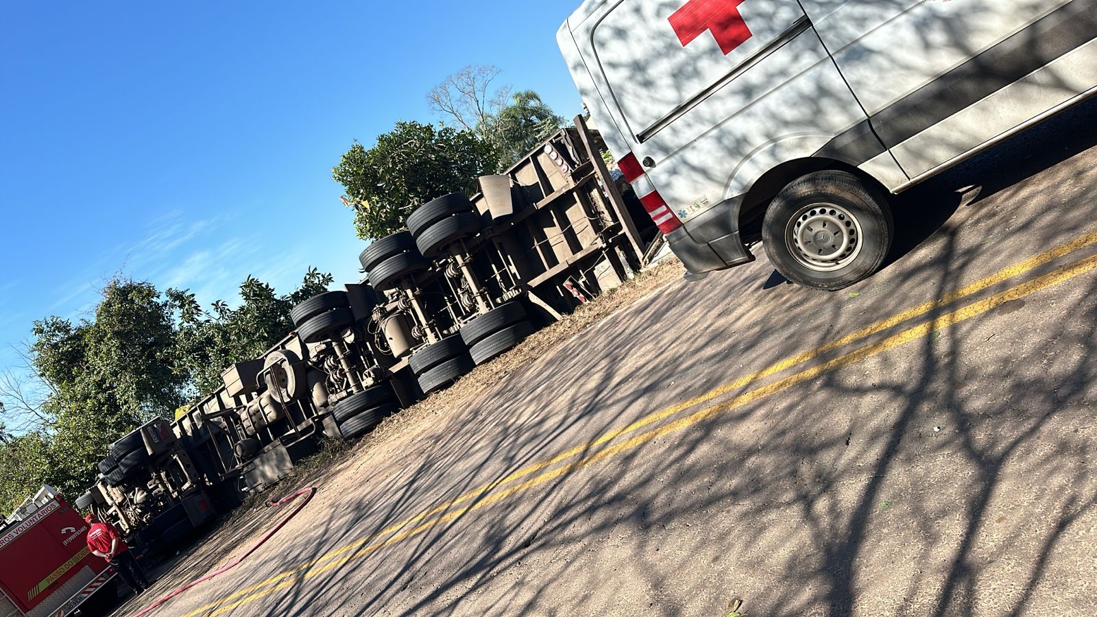 Ao chegarem no local, constataram o tombamento de um caminhão e o motorista em óbito, constatado por uma equipe da Secretaria Municipal de Saúde de Vale Verde. No momento do atendimento, não foi possível identificar a vítima e o semireboque, pois o veículo perdeu a placa.