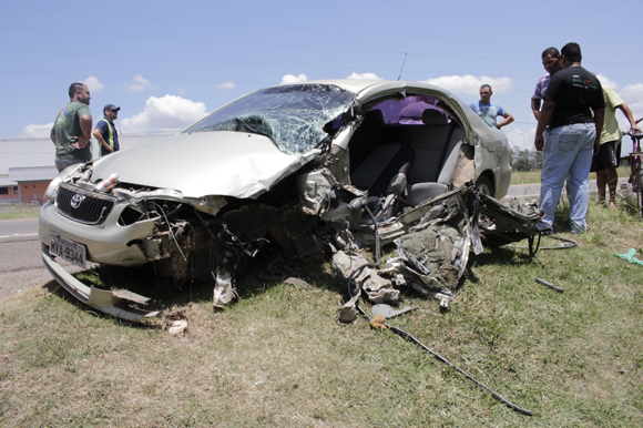 Uma mulher ficou ferida após o Corolla que ela conduzia se envolver em uma colisão com um caminhão carregado de pedras. O acidente aconteceu antes do meio-dia deste sábado, 13, na BR-471, próximo à empresa Mor, no Distrito Industrial de Santa Cruz do Sul. Ambos os veículos têm placas de Santa Cruz.