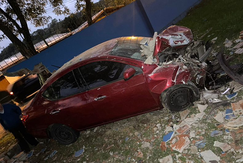 Motorista perde controle de veículo e colide contra muro da Escola Harmonia
