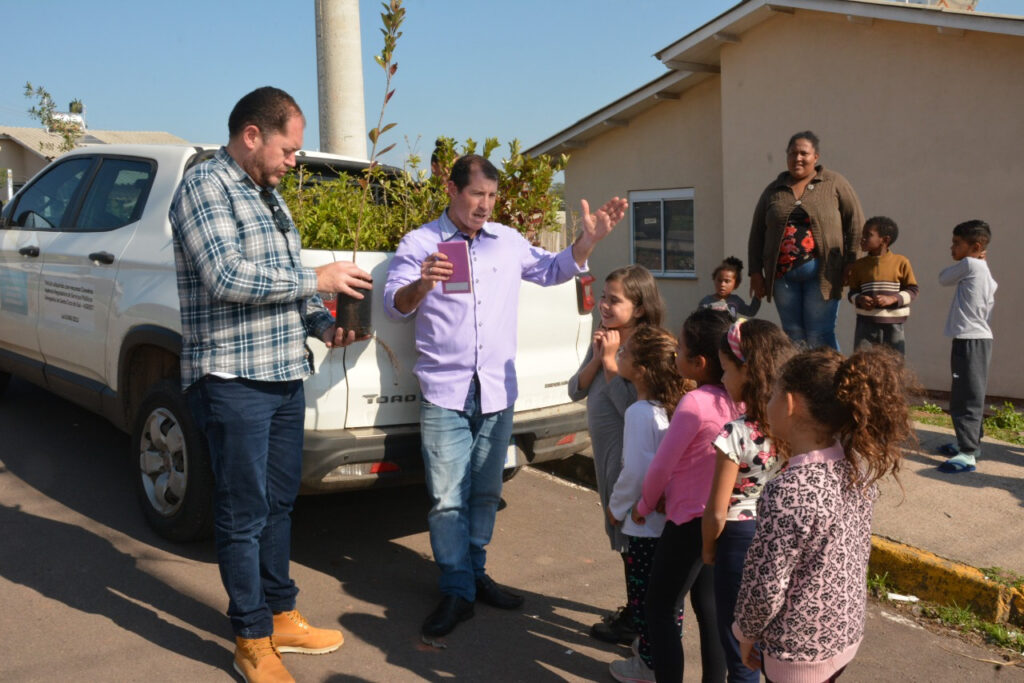 A iniciativa, segundo o secretário Jaques Eisenberger, partiu de uma solicitação dos moradores durante ação promovida no loteamento em junho, por meio de parceria entre a Prefeitura e a RGE, dentro do projeto Arborização + Segura, que garantiu o plantio de 300 mudas. “A prefeita Helena também esteve presente e nos incumbiu de atender a comunidade com a doação de mudas e as devidas orientações para que os moradores pudessem ter árvores nos seus pátios”, afirmou.