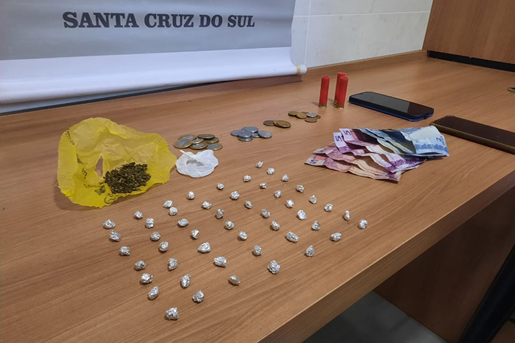 Com ela, foram apreendidos 6 gramas de maconha, 50 porções fracionadas de crack, dois aparelhos celulares e R$ 37,75 em dinheiro. Três cartuchos de calibre 28 foram encontrados sobre uma cadeira, na área da casa. O homem e a mulher que estavam no carro admitiram que tinham ido ao local comprar drogas.