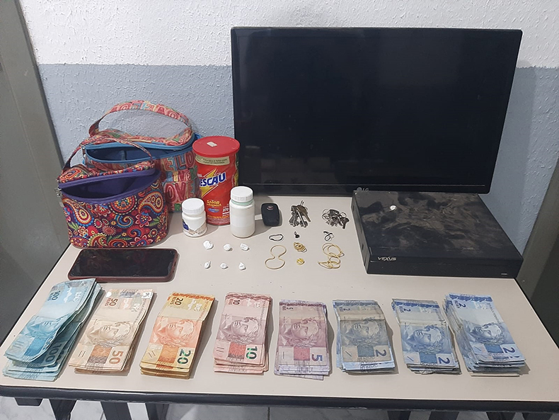 Ao chegar no local, os policiais visualizaram uma entrega de drogas e, ao realizar abordagem, localizaram entre as mercadorias uma lata vazia com seis buchas de cocaína dentro. Além das drogas, foram apreendidos R$ 3.360,00 em dinheiro, um celular, uma televisão e um monitor. Conforme a Brigada Militar, o estabelecimento tinha câmeras para monitorar a chegada dos policiais. A mulher foi encaminhada para registro na delegacia.