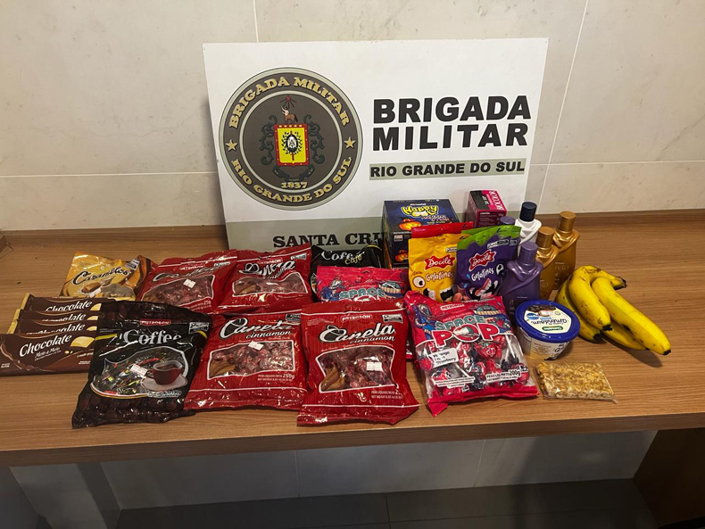 A partir disso, policiais militares passaram a procurá-la nas proximidades da loja. A mulher foi localizada na esquina das ruas Marechal Floriano e Fernando Abott. Com ela, havia uma sacola com doces e itens de perfumaria. O gerente da loja confirmou que os produtos haviam sido furtados do estabelecimento.