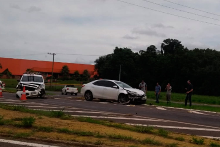 Uma mulher ficou ferida na colisão entre um Honda HR-V com placas de Santa Cruz do Sul, um GM Sonic com placas de São Borja e um caminhão com placas de Blumenau, na tarde desta segunda-feira, 18, por volta das 16h30, no quilômetro 92 da RSC-287, em Linha Pinheiral, em frente à Padaria Lisaruth.