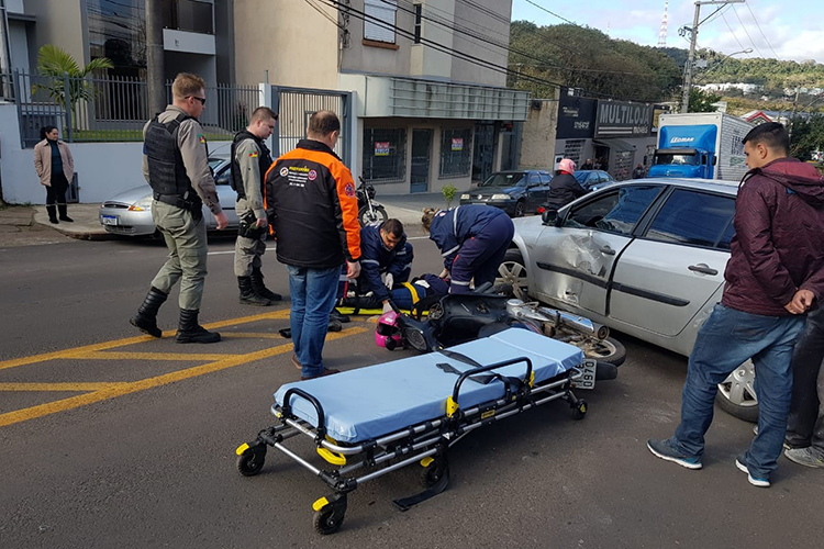 Uma mulher ficou ferida após um acidente envolvendo um carro e uma moto no Centro de Santa Cruz do Sul. A colisão ocorreu na tarde desta quarta-feira, 14, por volta das 15 horas, na Rua Felipe Jacobus Filho.