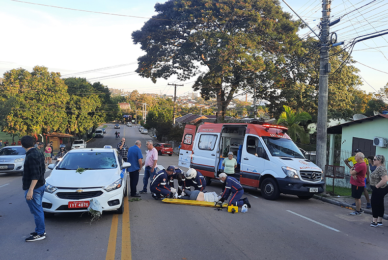 Uma mulher ficou gravemente ferida na tarde desta quarta-feira, 7, após ser atropelada por um taxista. O caso aconteceu na Rua Dr. Arthur Germano Fett, próximo ao entroncamento com a Rua São Roque, no Bairro Arroio Grande. O motorista do táxi relatou que seguia pela Rua Arthur Germano Fett, atrás de um ônibus, e acabou não vendo a mulher que atravessava a via sobre a faixa de pedestres.