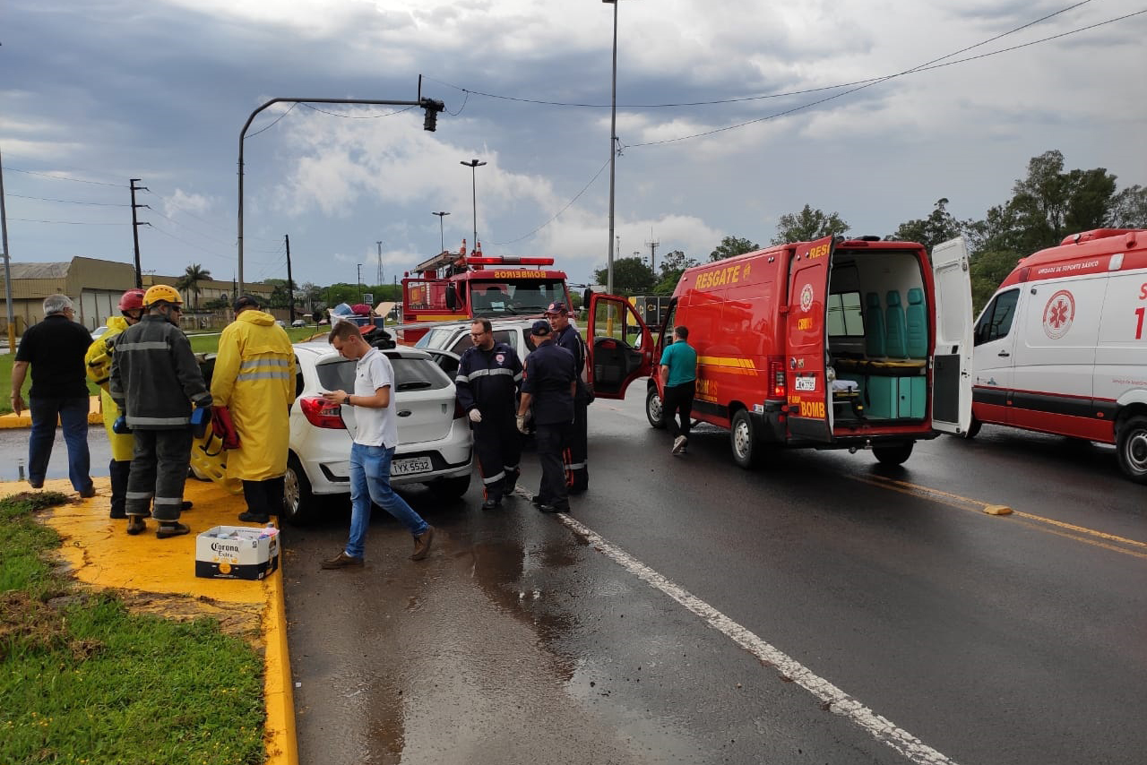 O Corpo de Bombeiros precisou tirar a vítima que ficou presa às ferragens. O Serviço de Atendimento Móvel de Urgência (Samu) encaminhou a mulher para o hospital. Os nomes dos envolvidos não foram divulgados.