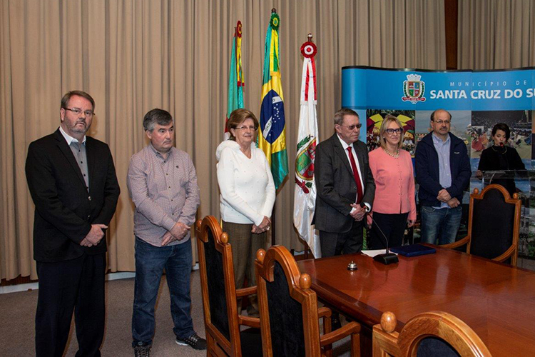 Durante o ato, o prefeito Telmo Kirst entregou uma placa com mensagem à homenageada, que além de santa-cruzense é também sua amiga desde a infância. “É dever da terra reconhecer quando seus filhos por ela fazem muita coisa”, disse ele.