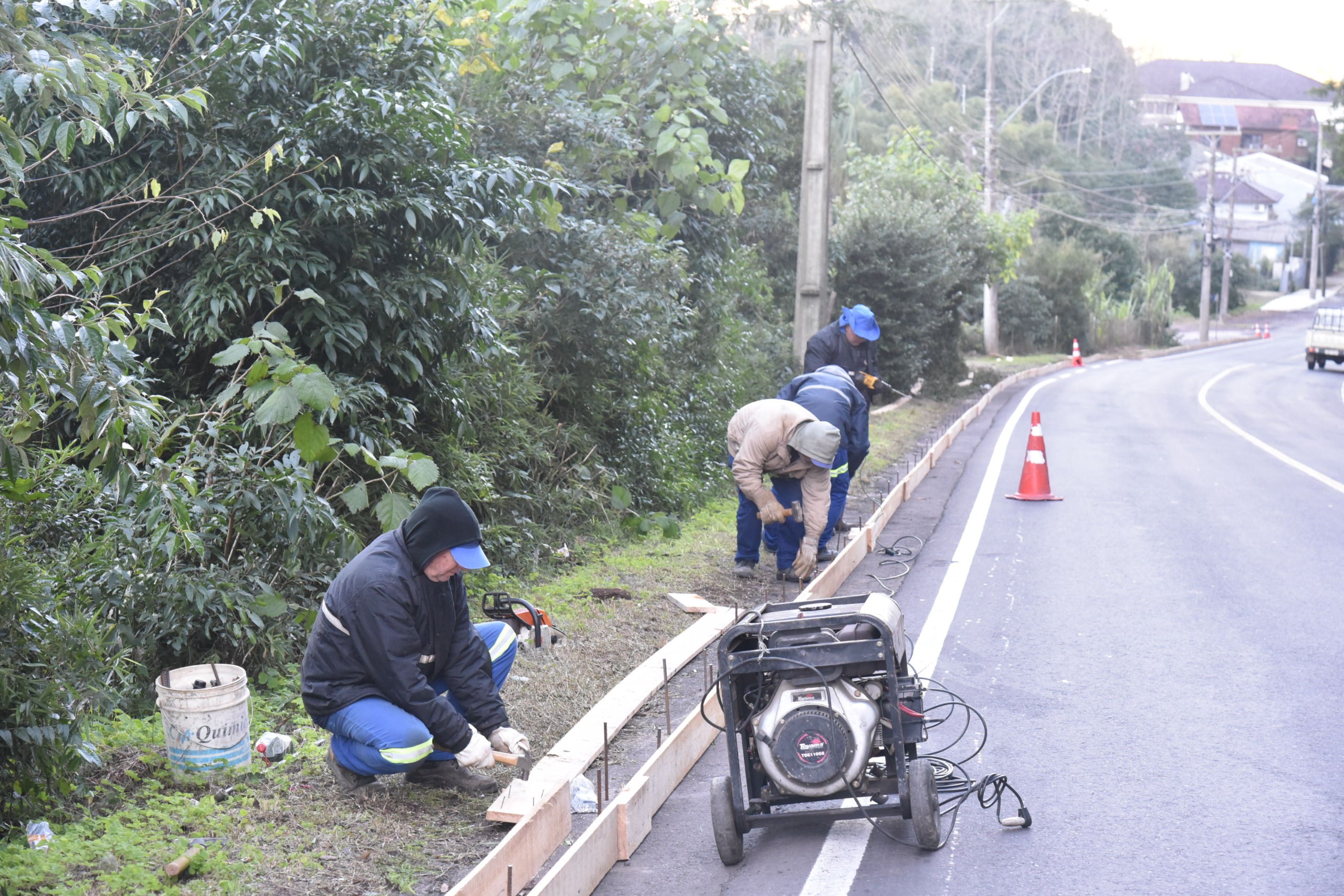 No local, está sendo construído um meio-fio de concreto de contenção em toda a extensão mais inclinada da via, no sentido centro-bairro, para impedir a infiltração de água no solo, já que durante as últimas chuvas, em um ponto do trajeto ocorreu o deslizamento de parte de um barranco bem próximo do pavimento. De acordo com o engenheiro da Defesa Civil, Leandro Kroth, a intervenção realizada no local é a mais viável. “A construção de mureta é uma forma de deslocar a água e impedir que ela se infiltre no solo, para evitar que deslizamentos iguais ao que houve se repitam”, explicou.