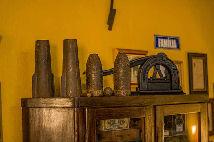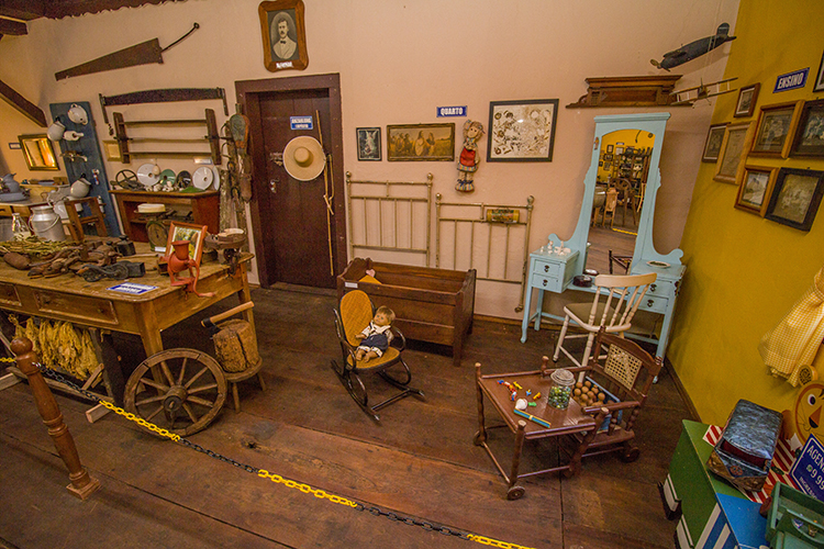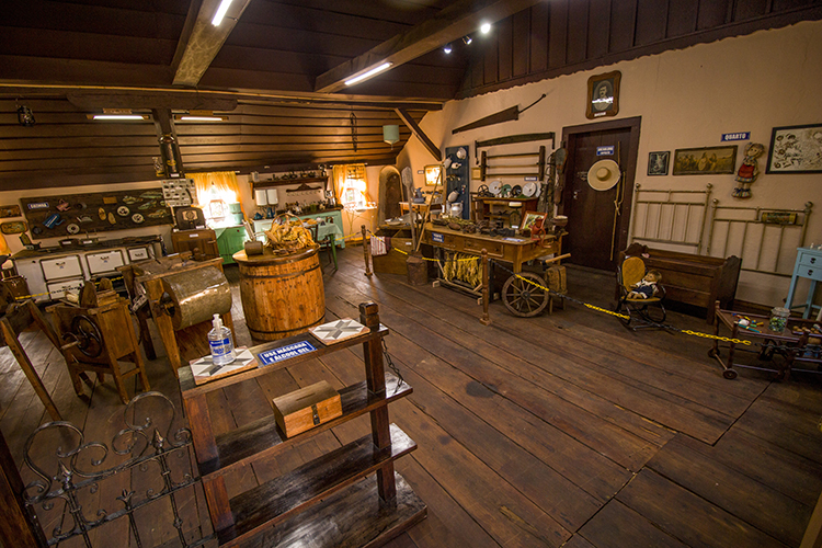 Tamancos de madeira também constam no acervo. Em uma prateleira estão dispostas as ferramentas da antiga marcenaria. Um quarto de criança conta com um berço de madeira, penteadeira, cadeira de balanço e brinquedos antigos. Quadros com fotos mostram turmas de alunos que visitavam o lugar em excursões. Para finalizar, a parte religiosa traz fotos de igrejas, certificados e até um calendário alemão com a foto do casarão.