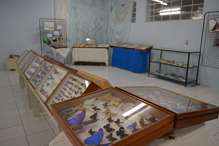 De acordo com Maria Luiza, as borboletas e mariposas são seres extremamente frágeis e sua vida, ao contrário das rochas e minerais, é muito efêmera. Os minerais e as rochas mostram em suas cores uma beleza fascinante que, no passado, deslumbrou a realeza e os ricos senhores. “Muitas vezes a mais bela pedra está oculta dentro de outra, que não nos chama nenhuma atenção. Há também fragmentos de rochas vulcânicas oriundas de diferentes continentes e vidro vulcânico encontrado no Rio Grande do Sul”, frisou.
