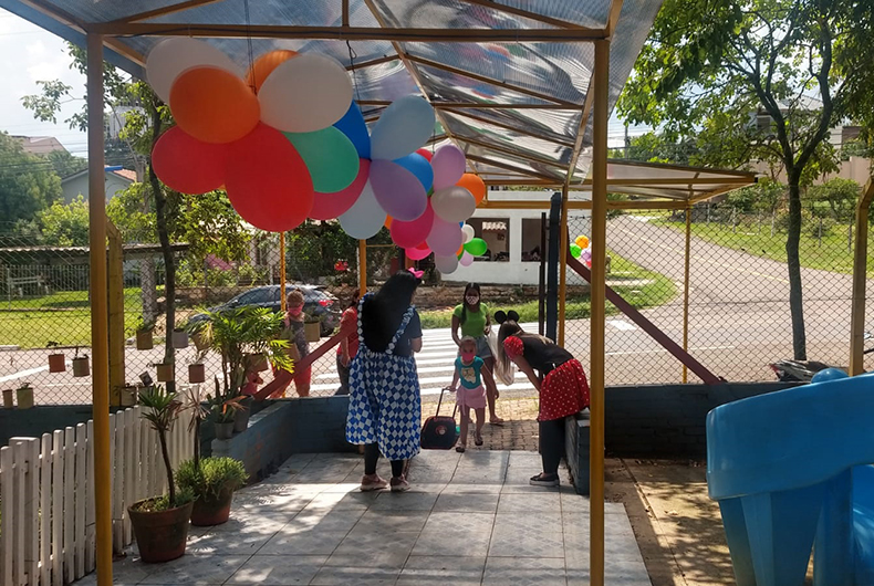 Na Emef Menino Deus, do Bairro Faxinal Menino Deus, também foi promovida uma atividade lúdica para os alunos. A professora de artes, Thaís Hohl, motivou os alunos do 8º ano a realizarem uma contação de histórias. No detalhe, a aluna Maria Janaína Couto da Silva compartilhou com os colegas o livro que escolheu. Já na Emei Raio de Sol, do Bairro Belvedere, atendentes e professores caracterizaram-se de personagens infantis para receber a garotada.