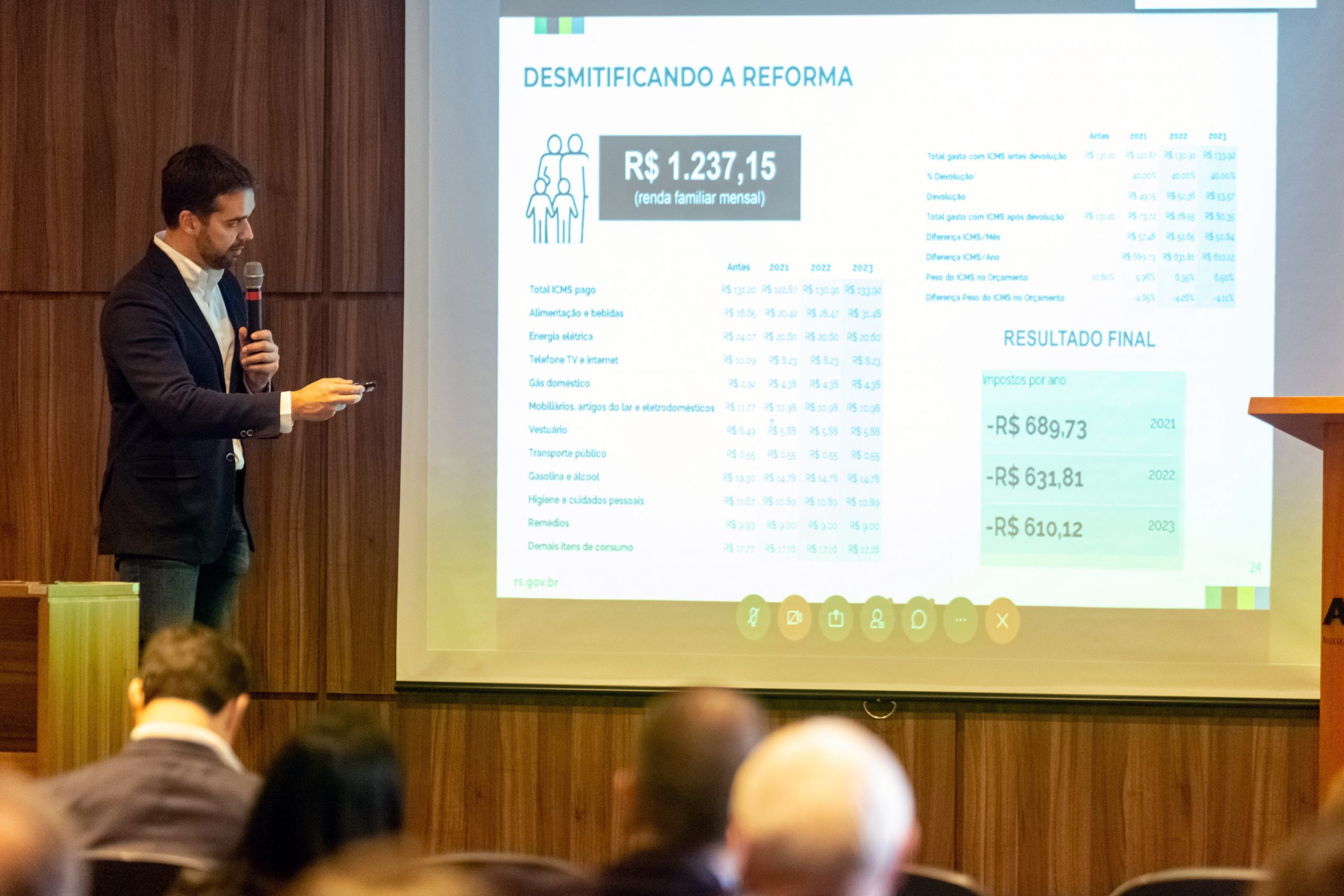 A iniciativa busca debater os três projetos de lei que compõem a reforma, além de desfazer mitos criados em torno de alguns pontos. Entre os quais, o de que a Reforma Tributária RS aumenta impostos e a carga tributária.