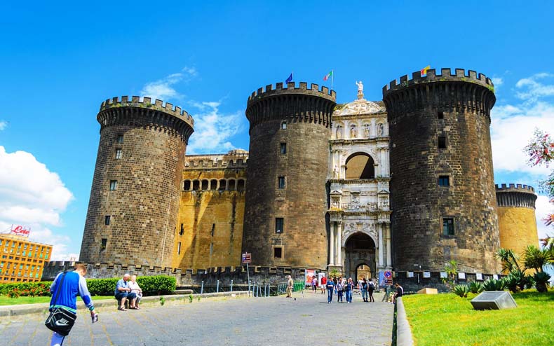 A força histórica napolitana está refletida nos históricos castelos de Sant’Elmo, Castel Nuovo e no milenar Castel Dell’Ovo. E como se não bastasse o que vemos na superfície, sob as estreitas e sombrias ruas da região central está a Nápoles Subterrânea, com 470 quilômetros conhecidos de túneis, câmaras e catacumbas que remontam aos gregos e romanos. Do topo do Castelo de Sant’Elmo, a visão da cidade é estupenda, sempre sob a ameaça constante do Monte Vesúvio, único vulcão ativo da Europa continental.