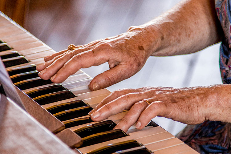 Todos os domingos, há mais de 45 anos, Iris Jaeger Rutsatz é a principal companheira do órgão de tubos. Aos 76 anos, além de organista, ela é regente do Coral da Igreja Evangélica Jubilate e integrante do Coral da Afubra. No primeiro, ela atua como coordenadora desde o ano de 1986; no outro, completou duas décadas de participação.