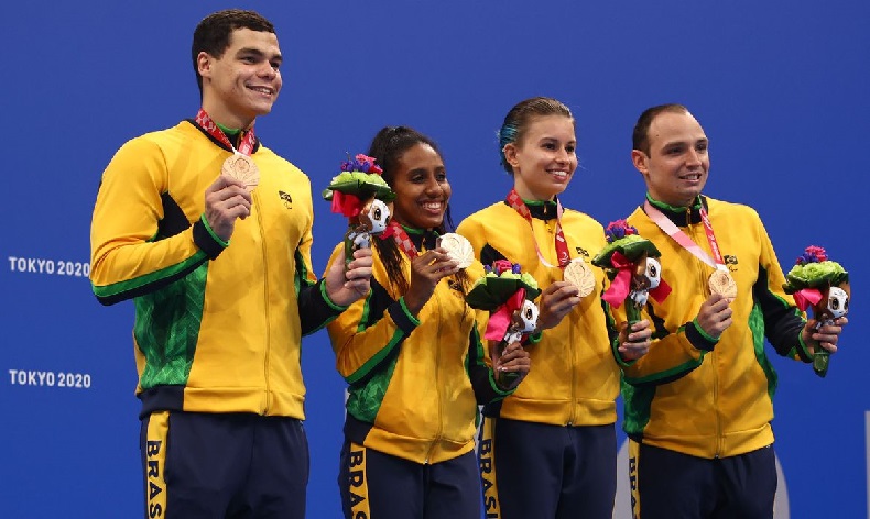 A natação brasileira chegou, na manhã deste sábado, 28, à décima medalha na Paralimpíada de Tóquio, no Japão, com a conquista do bronze no revezamento 4×100 metros livre misto S14 (atletas com deficiência intelectual).