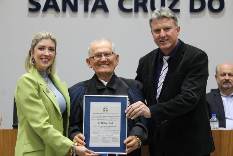 A Câmara de Vereadores de Santa Cruz do Sul fez a entrega nessa segunda-feira, 10, de dois títulos de Cidadão Santa-cruzense. Os agraciados foram Nelson Kich e Major Ivan Keller.