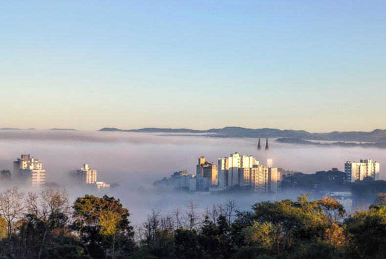 Os moradores da cidade de Santa Cruz do Sul que abriram a janela ou saíram para a rua nas primeiras horas da manhã dessa segunda-feira, 21, encontraram a paisagem escondida sob a formação de um nevoeiro raso. O fenômeno chamou a atenção pela pouca visibilidade, como se uma nuvem tivesse descido para descansar sobre o solo.