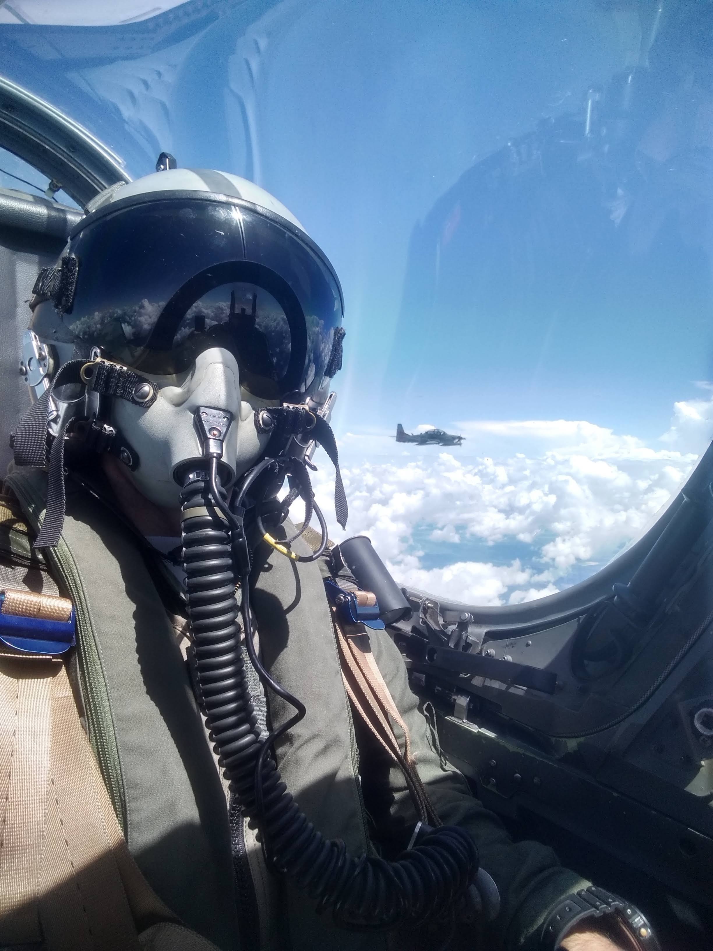 Além de muito estudo, a rotina de um piloto de caça também exige preparo físico, especialmente pelas condições a que se encontra dentro de um avião que pode atingir mais de 500 km/h e em grande altitude. Pilotando hoje um A-29 Super Tucano, produzido pela Embraer, salienta que com esta aeronave é possível desenvolver vários tipos de missão.