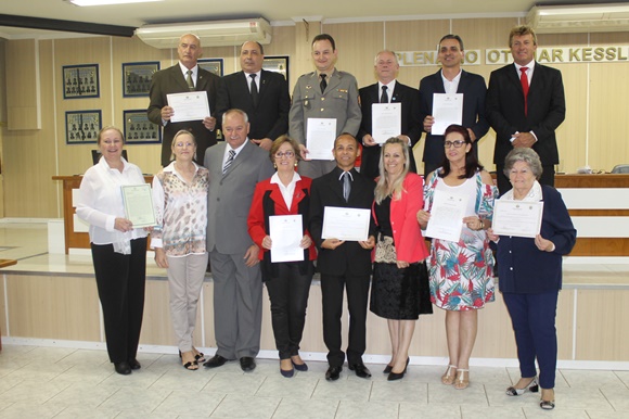 A Câmara de Vereadores realizou nesta segunda-feira, 18, sua última sessão ordinária do ano de 2017. Com o plenário Ottmar Kessler lotado, a noite também foi de homenagens, já que ocorreu a entrega das moções de reconhecimento e congratulações e títulos honoríficos concedidos ao longo do ano.