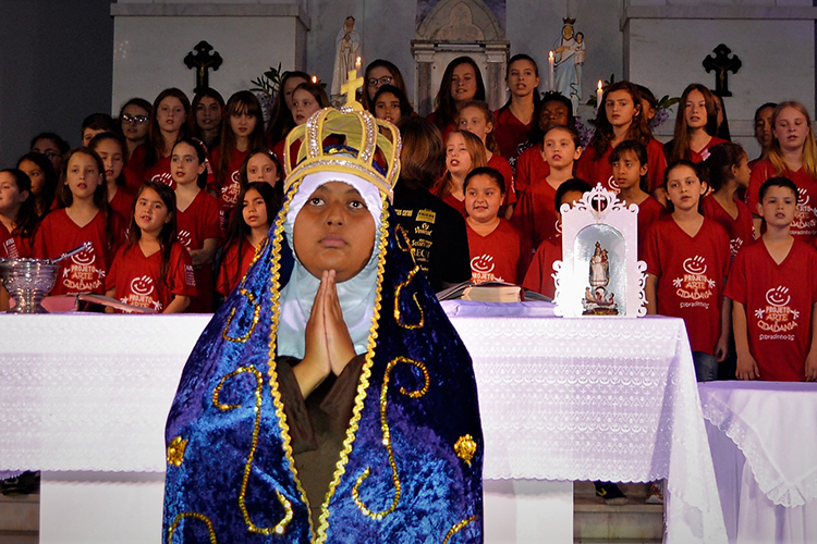 Na encenação, as crianças e adolescentes do projeto cantam e representam, trazendo a presença de Nossa Senhora como símbolo de afeto e cuidado. É uma apresentação preparada com muito carinho por todos, buscando no lúdico e na autenticidade das crianças a beleza e a emoção que tanto emociona.