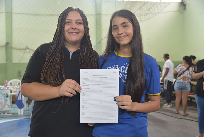 As irmãs Erica Alves e Lorraine Lopes ainda estão em idade escolar e já procuram uma oportunidade para ingressar no mercado de trabalho. Moradoras do Residencial Viver Bem, elas, que estão com 15 e 16 anos, respectivamente, foram até o Feirão fazer cadastro para tentar a primeira vaga de emprego como jovem aprendiz – “para poder ajudar os pais com as despesas de casa e também ter uma qualificação profissional”, explicam.